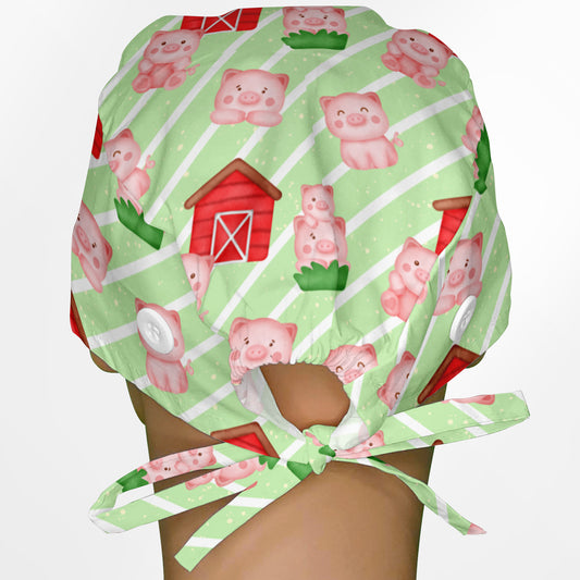 Cute Farm Piggies High Bun Ponytail Scrub Cap