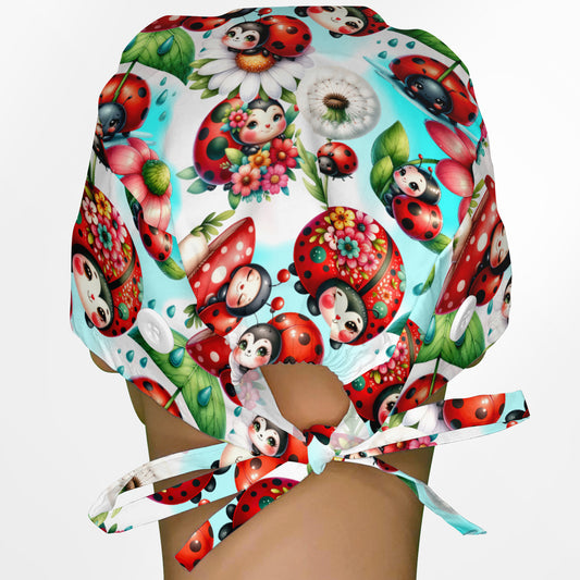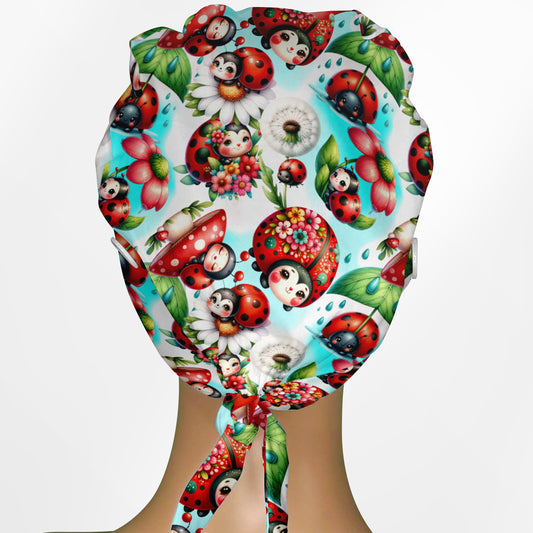 Whimsical Ladybugs - Blue Low-Tie Surgeon Cap