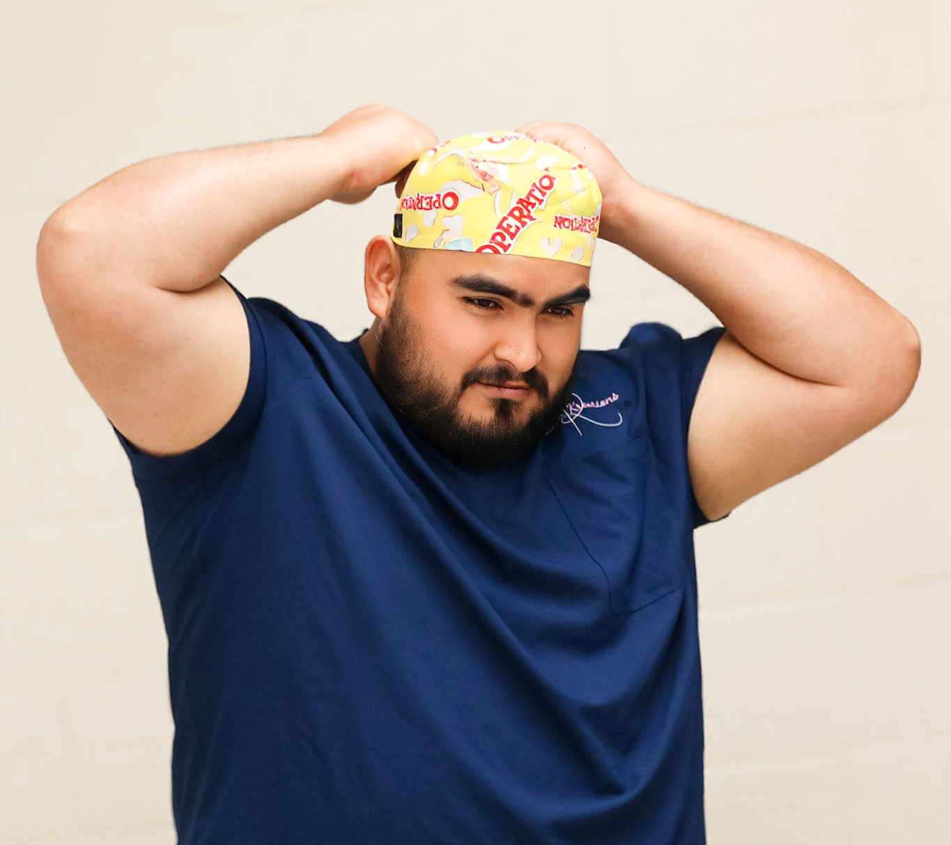 The Male Surgeon Cap style is a tie-back design, similar to disposable caps in hospitals, but ours are more comfortable and stylish. Ideal for short hair