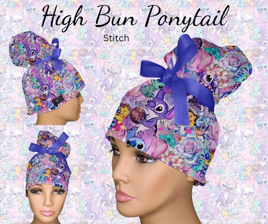 4. High Bun Ponytails: "High Bun Ponytail Scrub Caps - Hybrid Surgical Caps for Updo Styles"