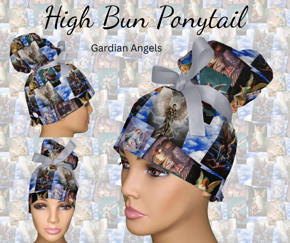 4. High Bun Ponytails: "High Bun Ponytail Scrub Caps - Hybrid Surgical Caps for Updo Styles"