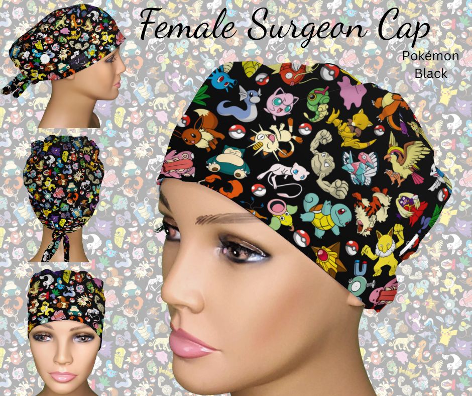 6. Female Surgeon Caps: Euro-Pixie Blend with Fabric Ties for Low Buns"