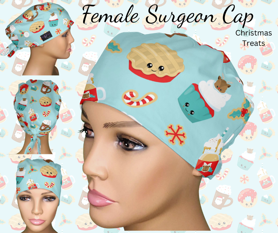 6. Female Surgeon Caps: Euro-Pixie Blend with Fabric Ties for Low Buns"