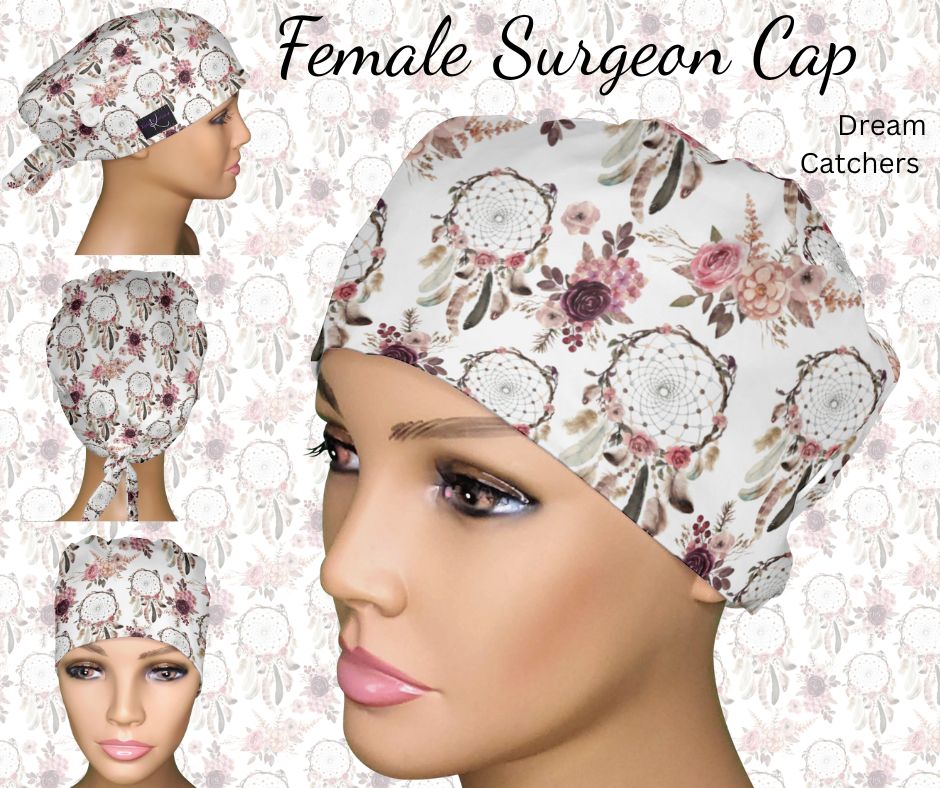 6. Female Surgeon Caps: Euro-Pixie Blend with Fabric Ties for Low Buns"