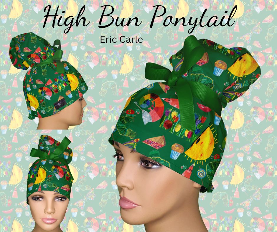 4. High Bun Ponytails: "High Bun Ponytail Scrub Caps - Hybrid Surgical Caps for Updo Styles"