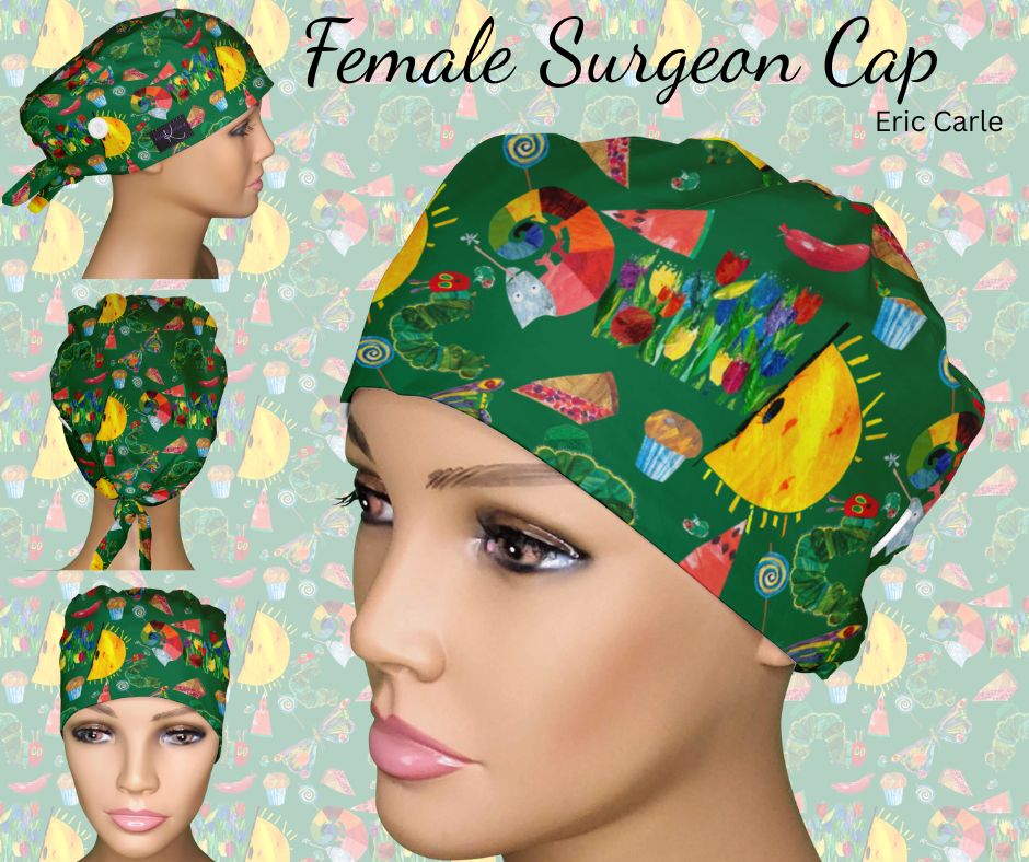 6. Female Surgeon Caps: Euro-Pixie Blend with Fabric Ties for Low Buns"