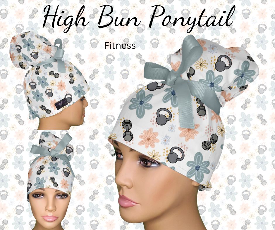 4. High Bun Ponytails: "High Bun Ponytail Scrub Caps - Hybrid Surgical Caps for Updo Styles"