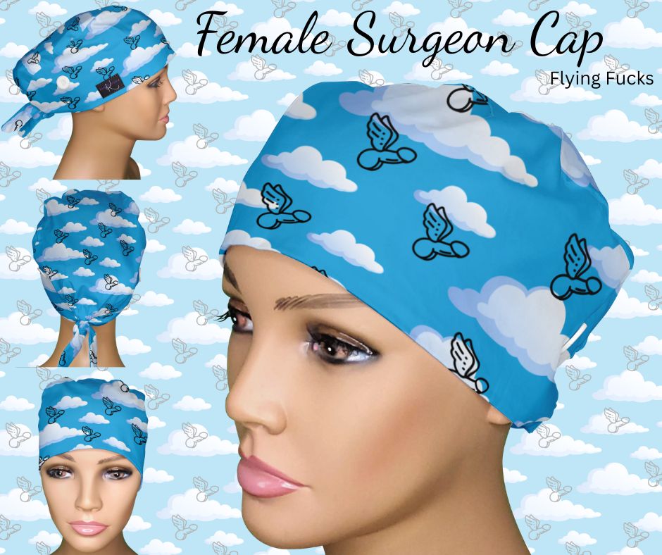 6. Female Surgeon Caps: Euro-Pixie Blend with Fabric Ties for Low Buns"