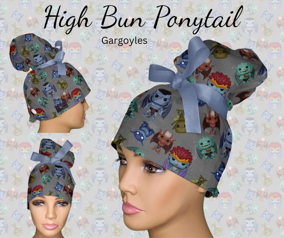 4. High Bun Ponytails: "High Bun Ponytail Scrub Caps - Hybrid Surgical Caps for Updo Styles"