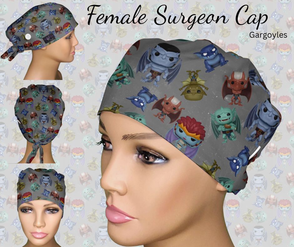 6. Female Surgeon Caps: Euro-Pixie Blend with Fabric Ties for Low Buns"