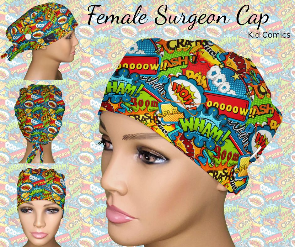 6. Female Surgeon Caps: Euro-Pixie Blend with Fabric Ties for Low Buns"