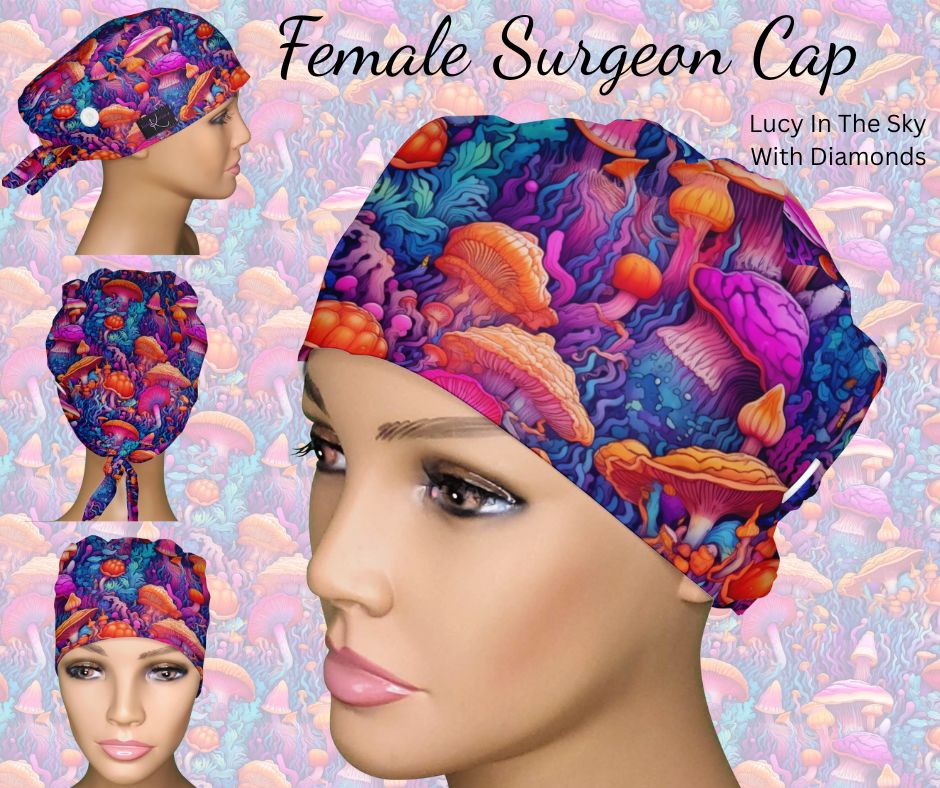 6. Female Surgeon Caps: Euro-Pixie Blend with Fabric Ties for Low Buns"