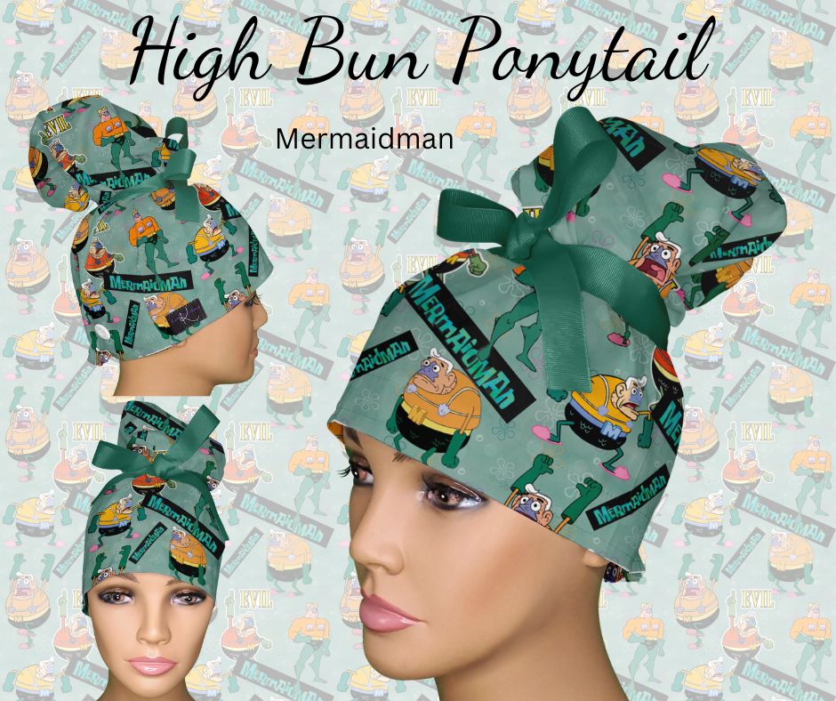 4. High Bun Ponytails: "High Bun Ponytail Scrub Caps - Hybrid Surgical Caps for Updo Styles"