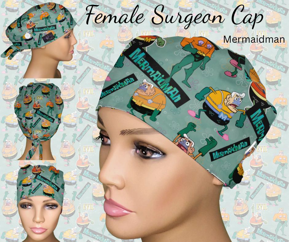 6. Female Surgeon Caps: Euro-Pixie Blend with Fabric Ties for Low Buns"