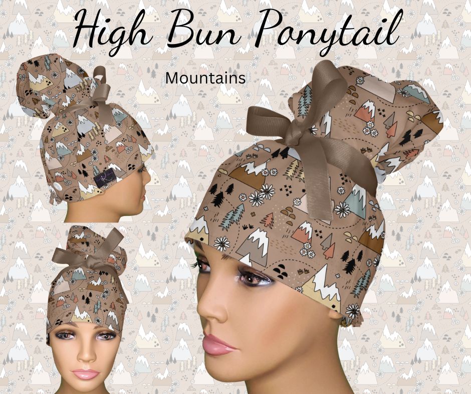4. High Bun Ponytails: "High Bun Ponytail Scrub Caps - Hybrid Surgical Caps for Updo Styles"