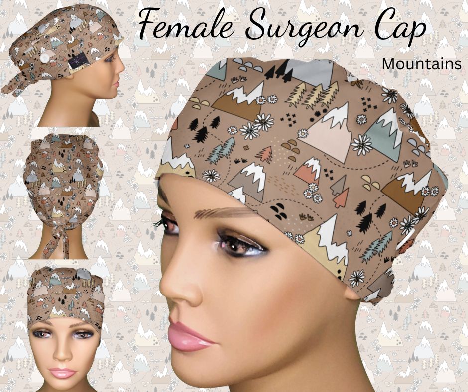 6. Female Surgeon Caps: Euro-Pixie Blend with Fabric Ties for Low Buns"