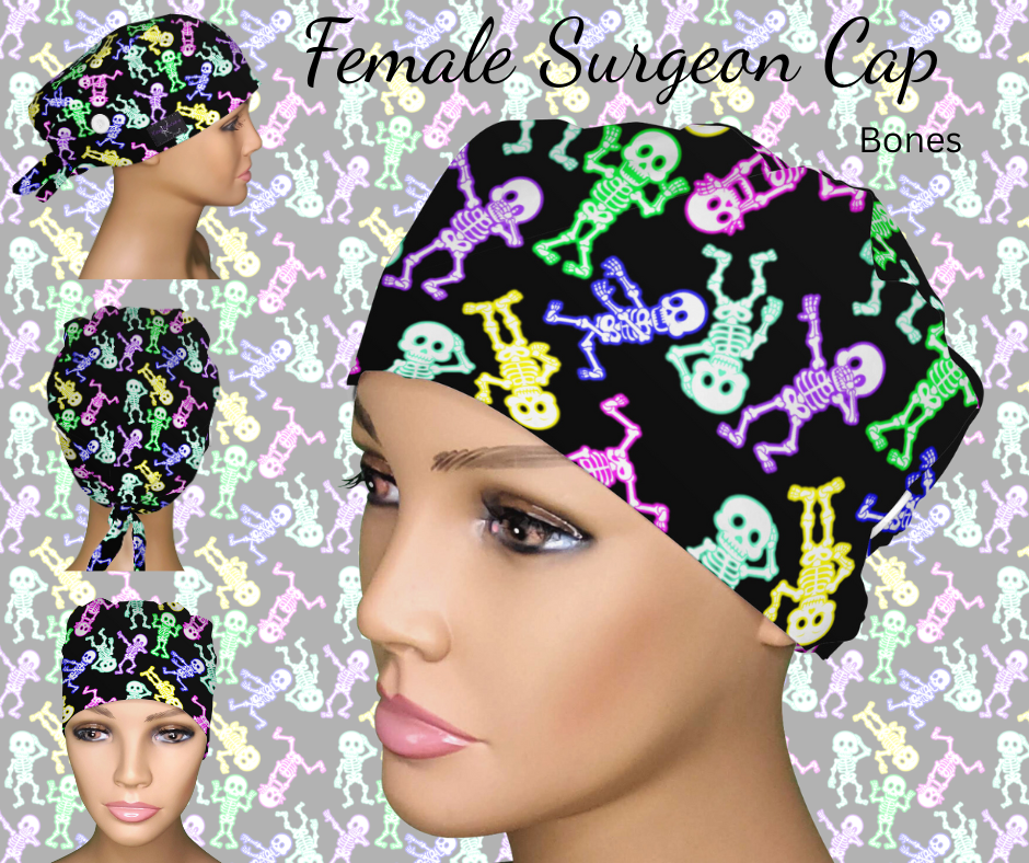 6. Female Surgeon Caps: Euro-Pixie Blend with Fabric Ties for Low Buns"