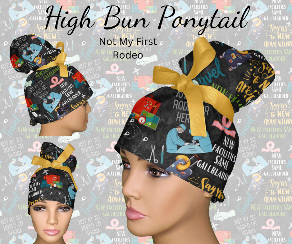 4. High Bun Ponytails: "High Bun Ponytail Scrub Caps - Hybrid Surgical Caps for Updo Styles"