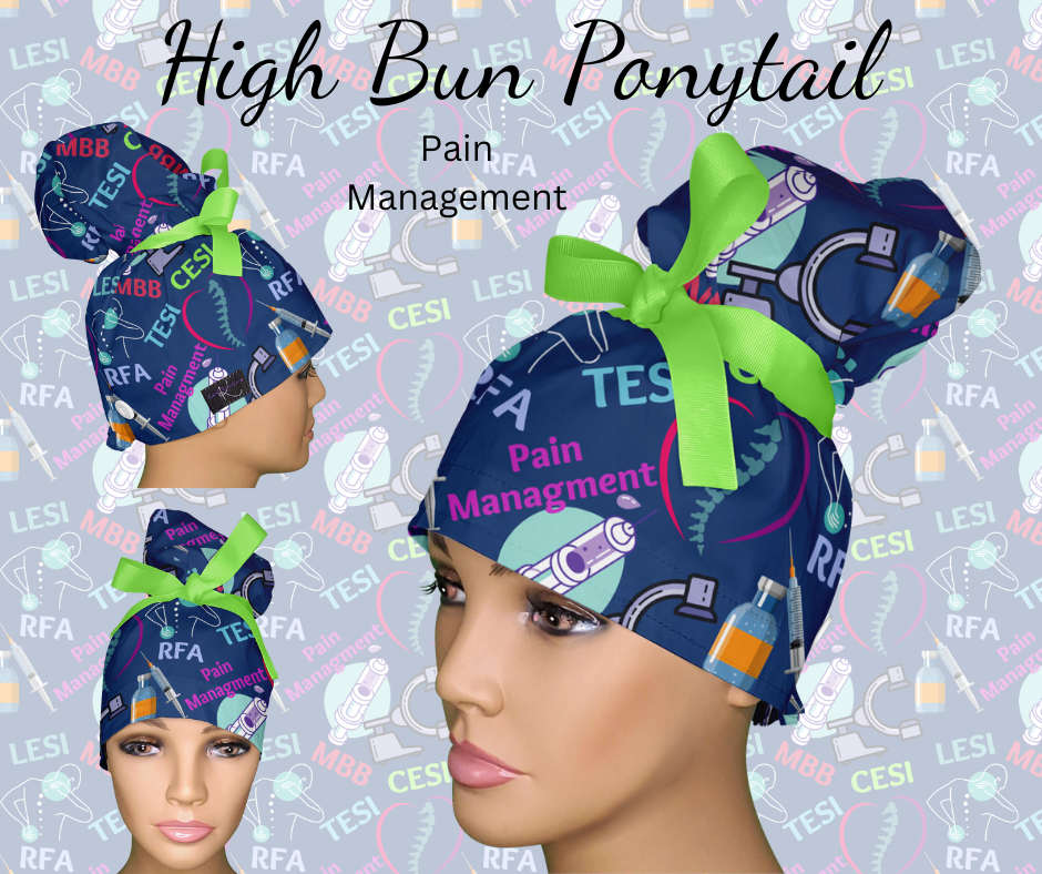 4. High Bun Ponytails: "High Bun Ponytail Scrub Caps - Hybrid Surgical Caps for Updo Styles"