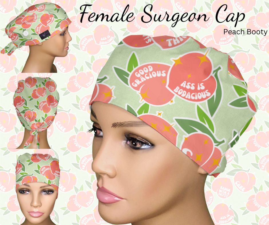 6. Female Surgeon Caps: Euro-Pixie Blend with Fabric Ties for Low Buns"