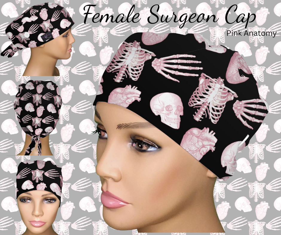 6. Female Surgeon Caps: Euro-Pixie Blend with Fabric Ties for Low Buns"
