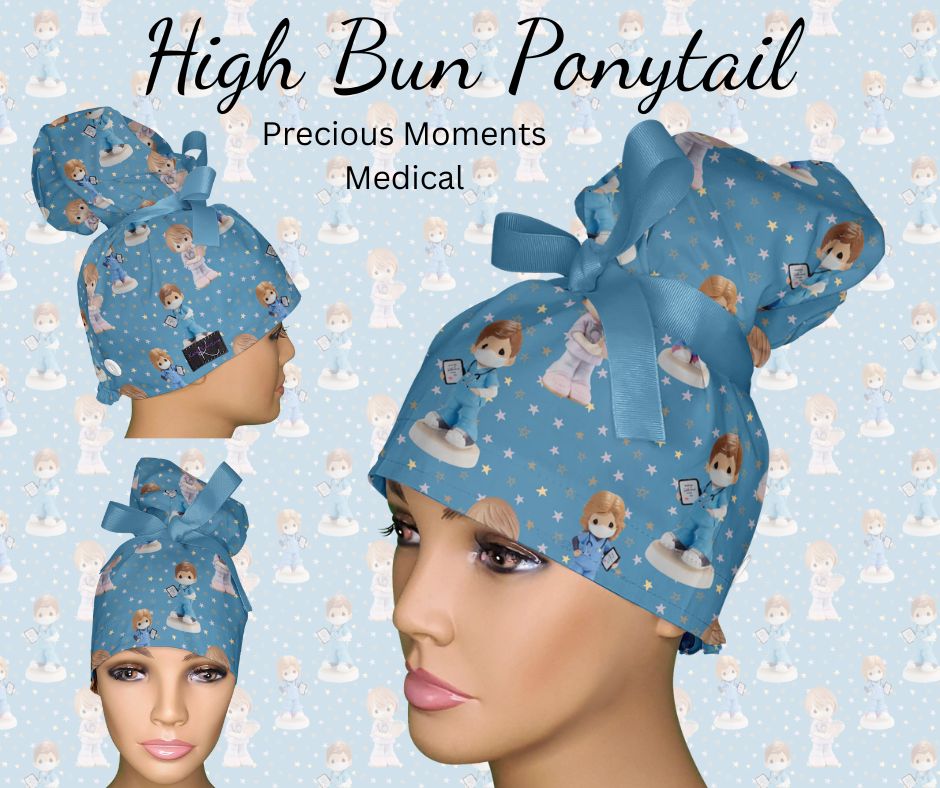 4. High Bun Ponytails: "High Bun Ponytail Scrub Caps - Hybrid Surgical Caps for Updo Styles"