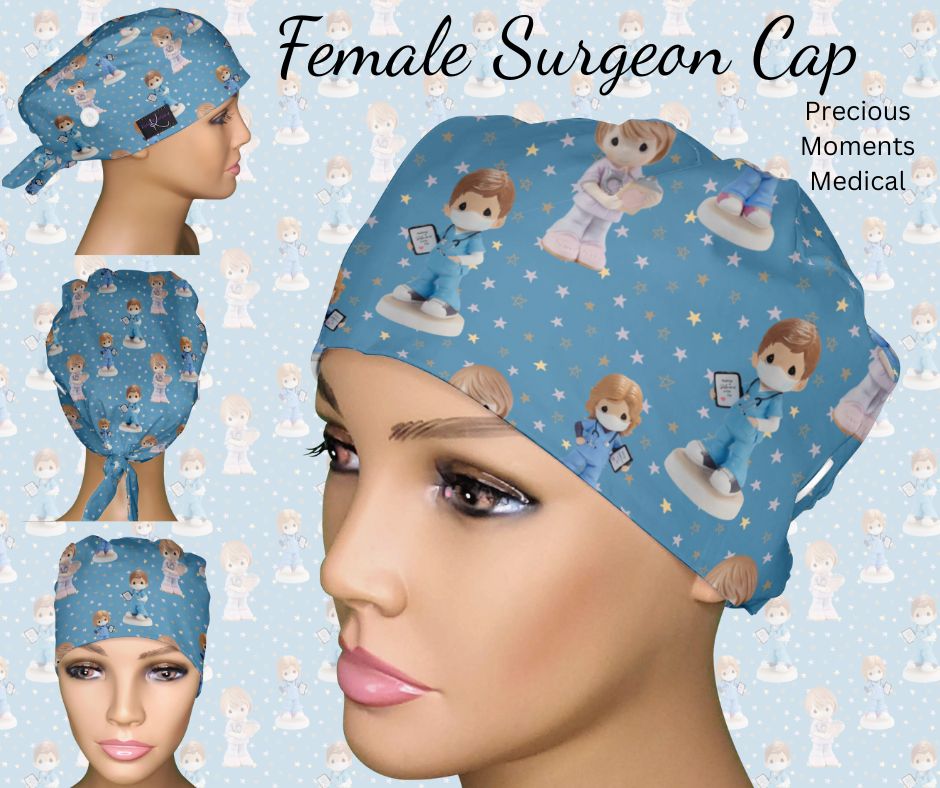 6. Female Surgeon Caps: Euro-Pixie Blend with Fabric Ties for Low Buns"