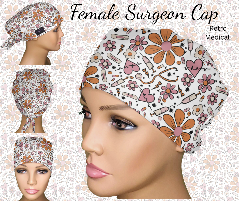 6. Female Surgeon Caps: Euro-Pixie Blend with Fabric Ties for Low Buns"