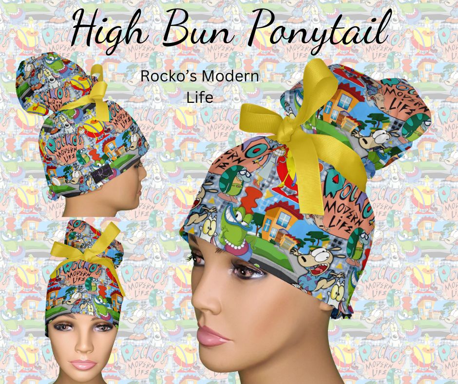 4. High Bun Ponytails: "High Bun Ponytail Scrub Caps - Hybrid Surgical Caps for Updo Styles"