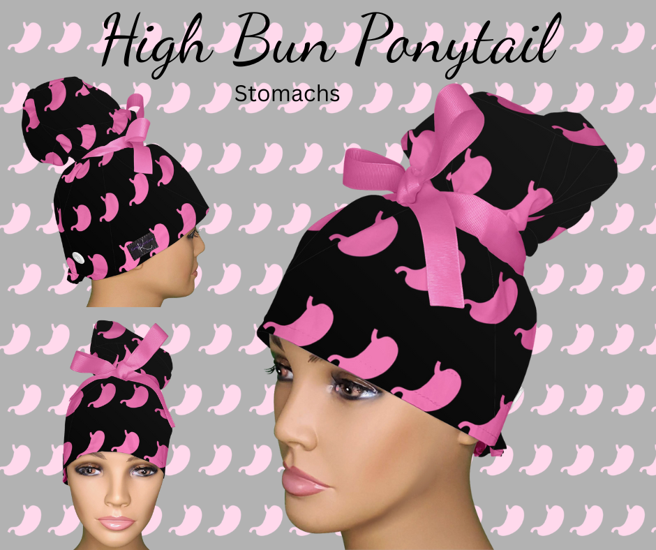 4. High Bun Ponytails: "High Bun Ponytail Scrub Caps - Hybrid Surgical Caps for Updo Styles"