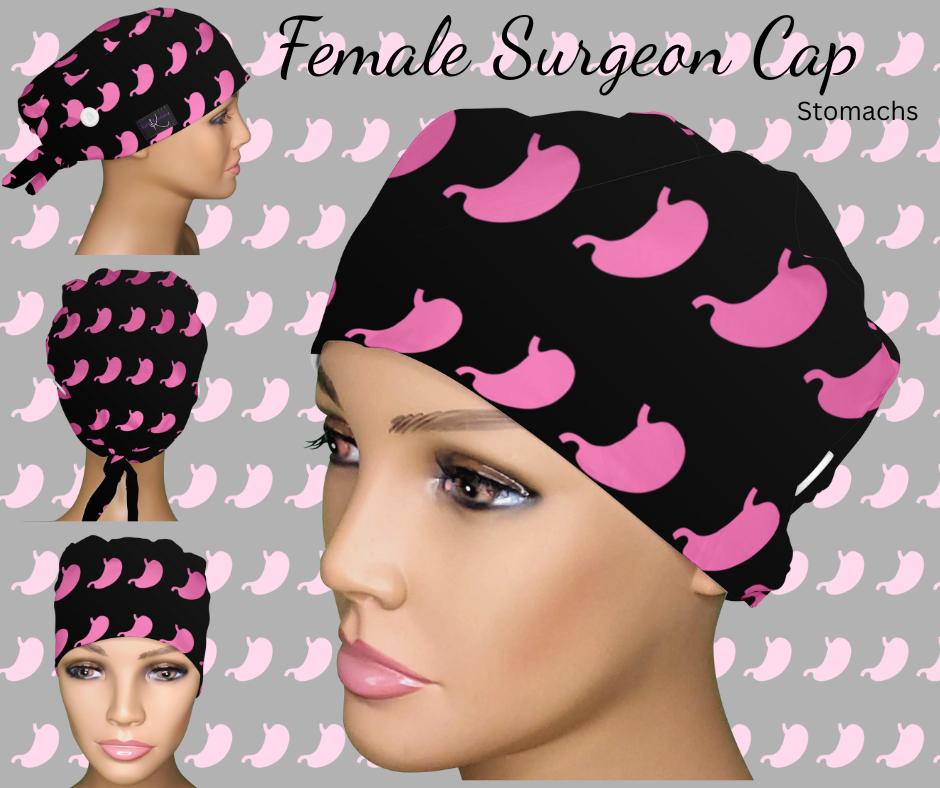 6. Female Surgeon Caps: Euro-Pixie Blend with Fabric Ties for Low Buns"