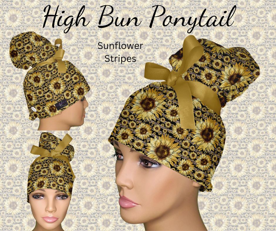 4. High Bun Ponytails: "High Bun Ponytail Scrub Caps - Hybrid Surgical Caps for Updo Styles"