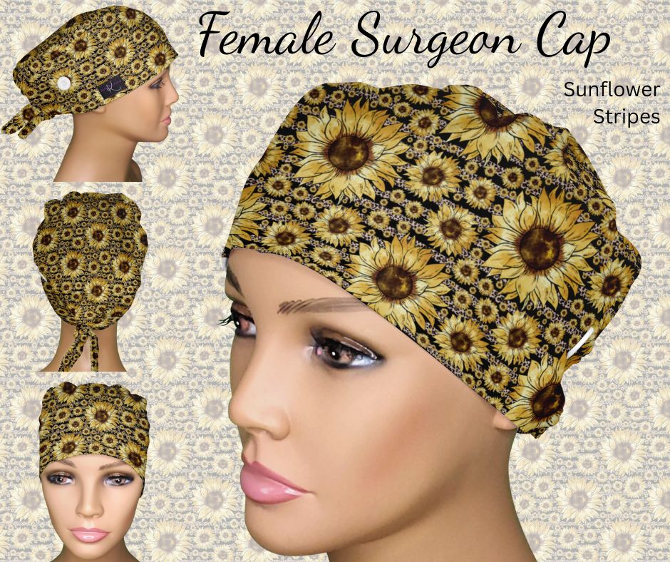 6. Female Surgeon Caps: Euro-Pixie Blend with Fabric Ties for Low Buns"
