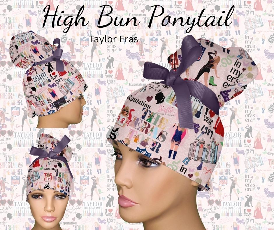 4. High Bun Ponytails: "High Bun Ponytail Scrub Caps - Hybrid Surgical Caps for Updo Styles"