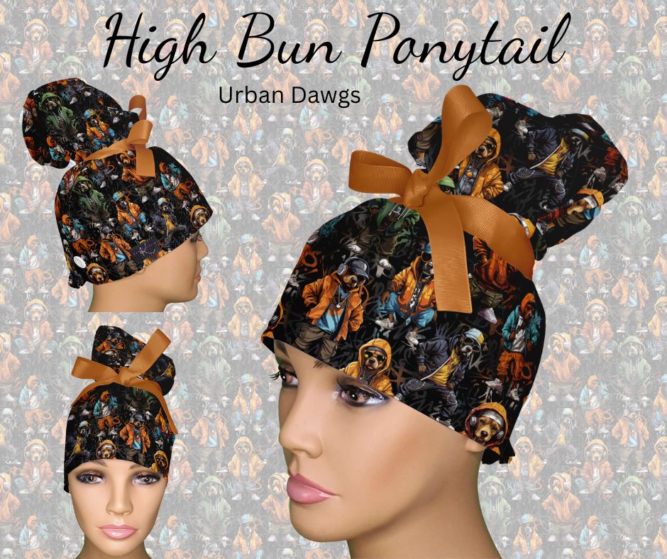 4. High Bun Ponytails: "High Bun Ponytail Scrub Caps - Hybrid Surgical Caps for Updo Styles"