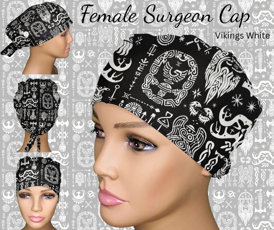 6. Female Surgeon Caps: Euro-Pixie Blend with Fabric Ties for Low Buns"