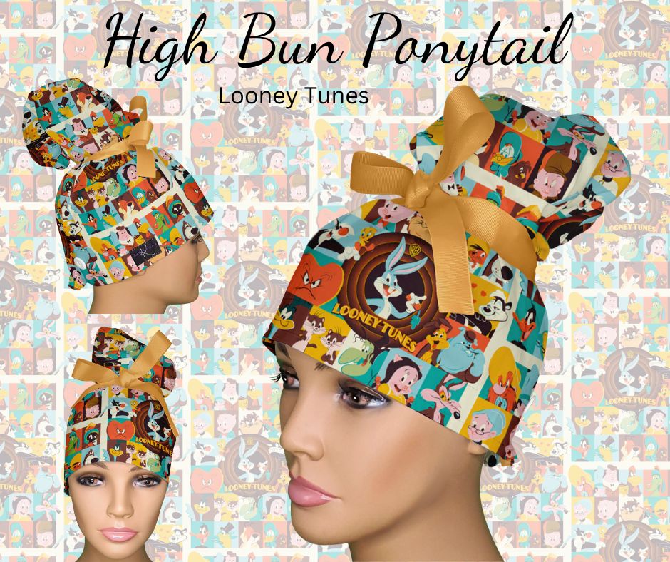 4. High Bun Ponytails: "High Bun Ponytail Scrub Caps - Hybrid Surgical Caps for Updo Styles"