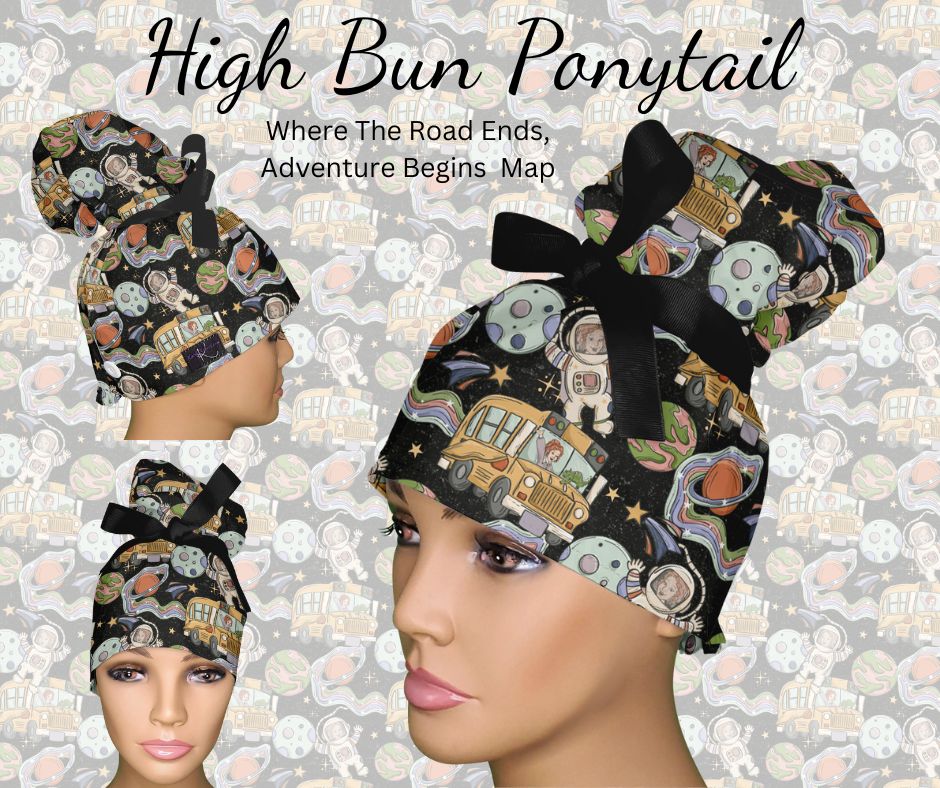4. High Bun Ponytails: "High Bun Ponytail Scrub Caps - Hybrid Surgical Caps for Updo Styles"
