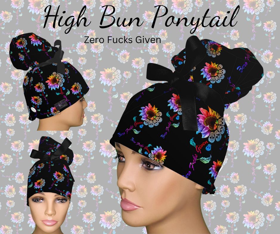 4. High Bun Ponytails: "High Bun Ponytail Scrub Caps - Hybrid Surgical Caps for Updo Styles"