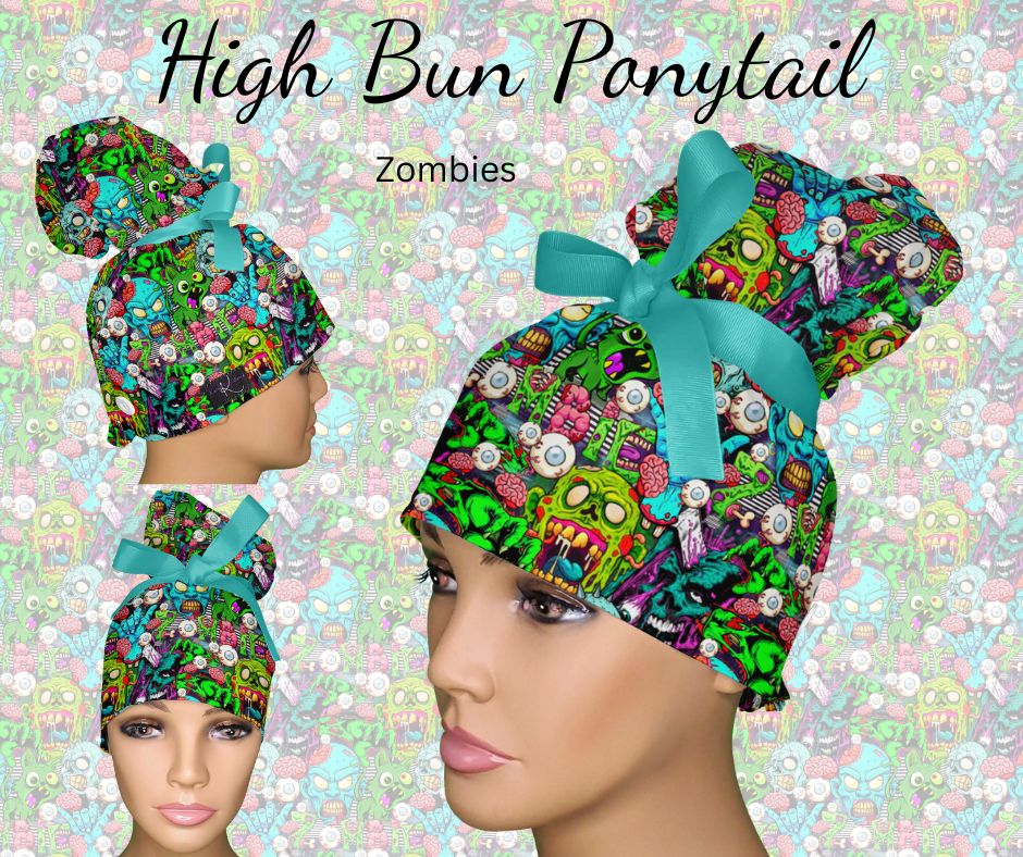 4. High Bun Ponytails: "High Bun Ponytail Scrub Caps - Hybrid Surgical Caps for Updo Styles"