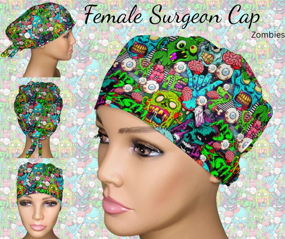 6. Female Surgeon Caps: Euro-Pixie Blend with Fabric Ties for Low Buns"